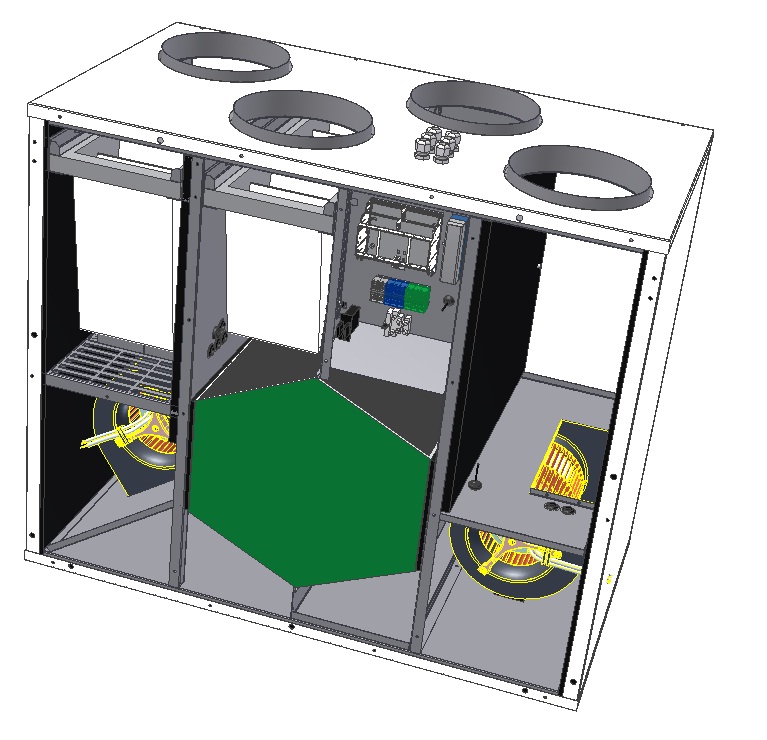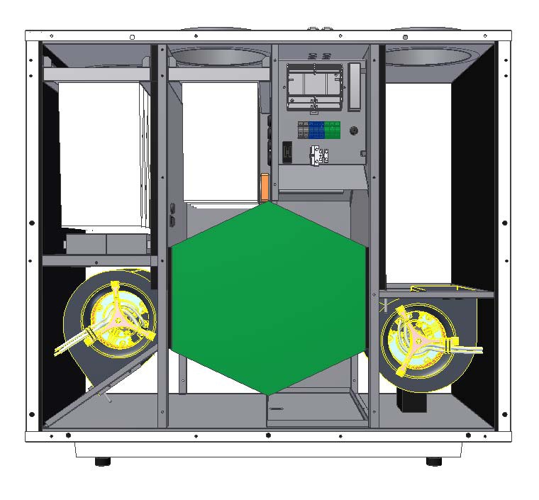 Ansicht des LG500 Lüftungsgerätes von vorne: