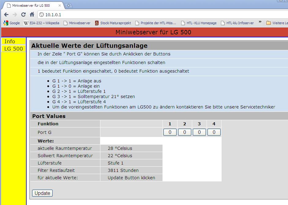 Ausgabe der Daten der UZA Steuerung auf dem Hyperterminal